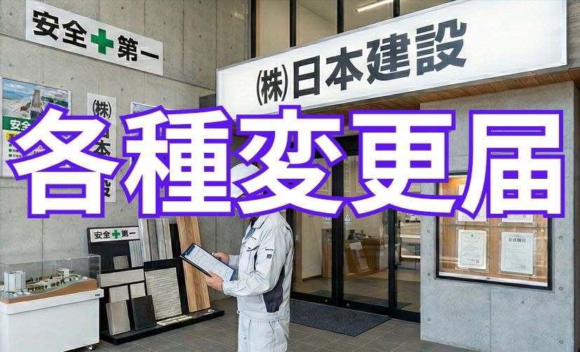 許可取得後の会社名、所在地、経営業務の管理責任者、専任技術者等の変更手続きを代行します。